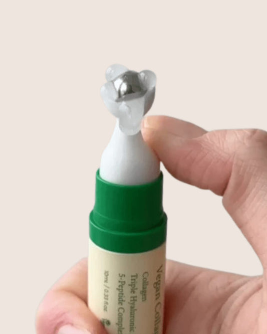 Sérum contour des yeux au collagÚne vegan, texture légÚre et anti-cernes.