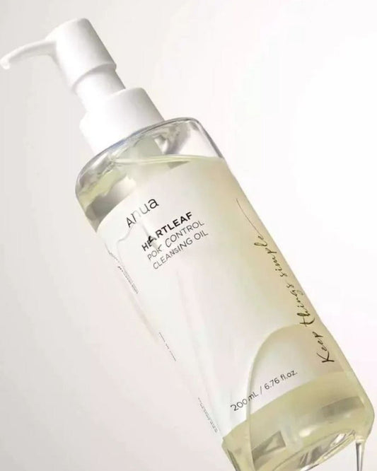✔ Huile démaquillante : ANUA - Heartleaf Pore Control Cleansing Oil pour dissoudre les impuretés et l’excès de sébum sans obstruer les pores.